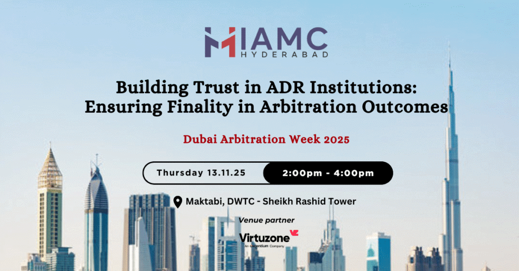 The International Arbitration and Mediation Centre (IAMC) has been set up in a 16,000 sq ft area and is located at the heart of the financial district of Hyderabad. The Centre has multi-functional rooms that cater to small and medium sized Arbitrations and Mediations.